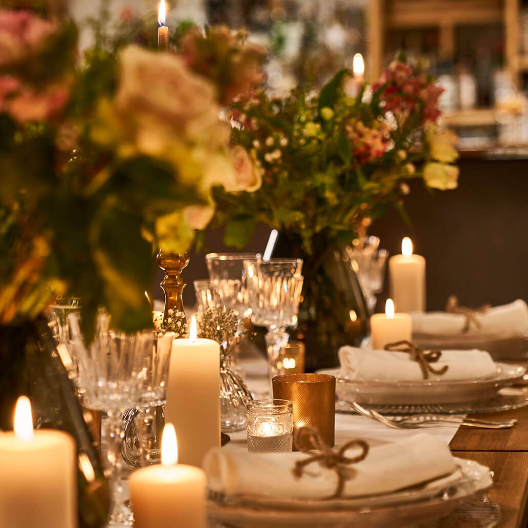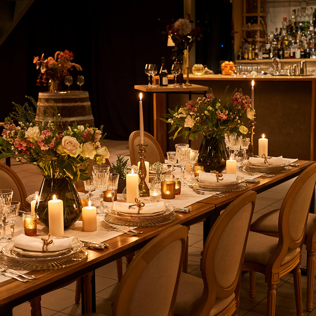 D’un événement à un autre, nous exploitons et décorons notre lieu de manière différente et sélectionnons minutieusement les pièces qui composent les arts de la table pour créer une atmosphère unique et personnalisée.